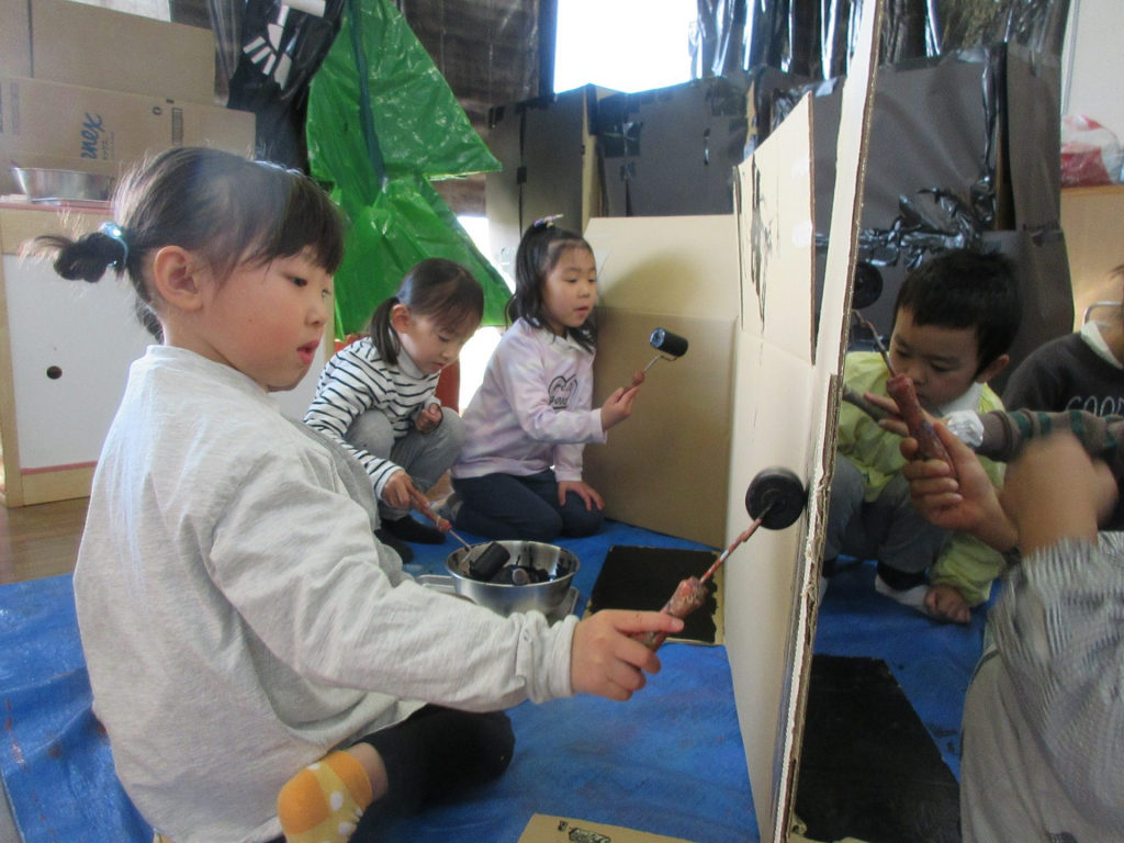 年中は4グループに分かれて活動しています😊!今回のテーマは四季🌳🍂各グループ、イメージを出し合いどんなものを作りたいのか、遊んだ時にどんなものがあったら楽しいかなど話し合いながら作りました!春は恐竜やお花畑があって華やかな場所に!夏はこわー... -