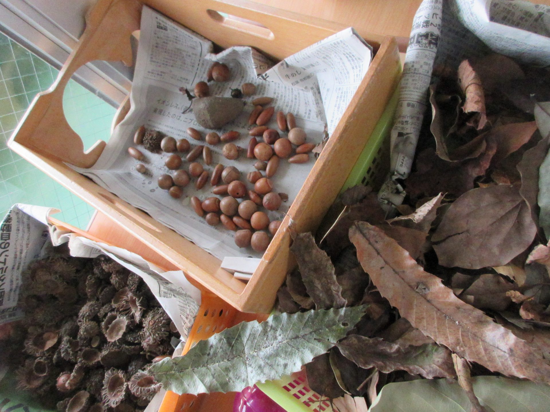 年中組では、公園で拾ってきた自然物は、子どもたちと種類ごとに分けることにしました😊