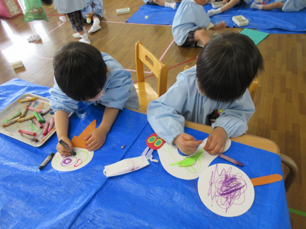 つぼみ組の子どもたちは幼稚園での生活に少しずつ慣れ、自分の好きなあそびや興味のあるあそびを楽しんでいる姿があります😊そして、つぼみ組では初めて「クレヨンあそび」をしました!最初は大きな模造紙にグルグルと円や線を描いたり、点を描いたり、子ど... -