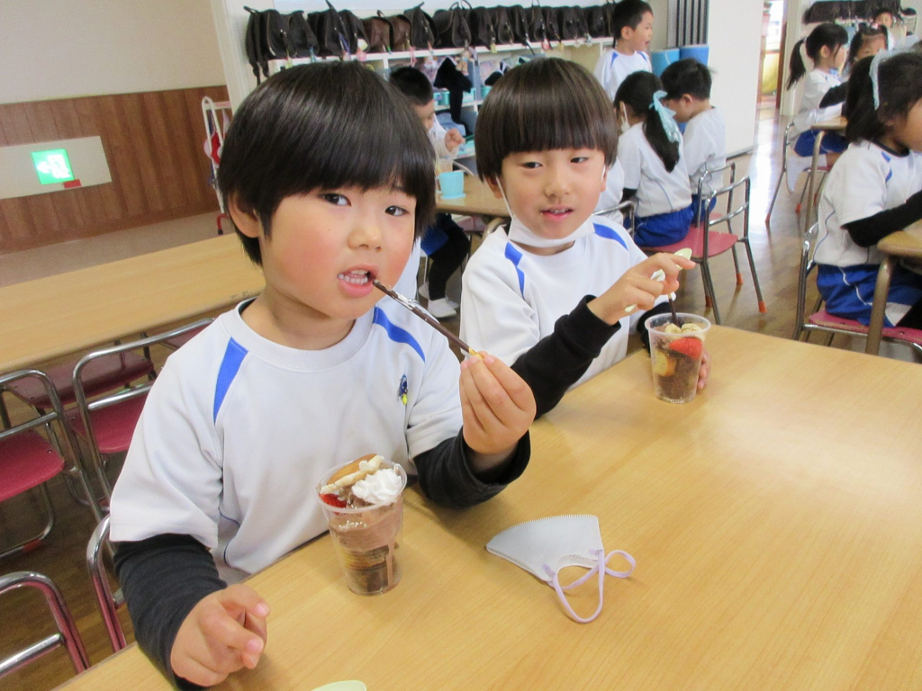 年中組の子どもたちがやりたい事の中に、「パフェを作って食べたい!」という思いがあり、学期末の思い出の一つとしてパフェ作りを行いました!パフェの中身のパウンドケーキは子どもたちの手作りです✨何味のパウンドケーキを作るのかグループのお友だちと... -