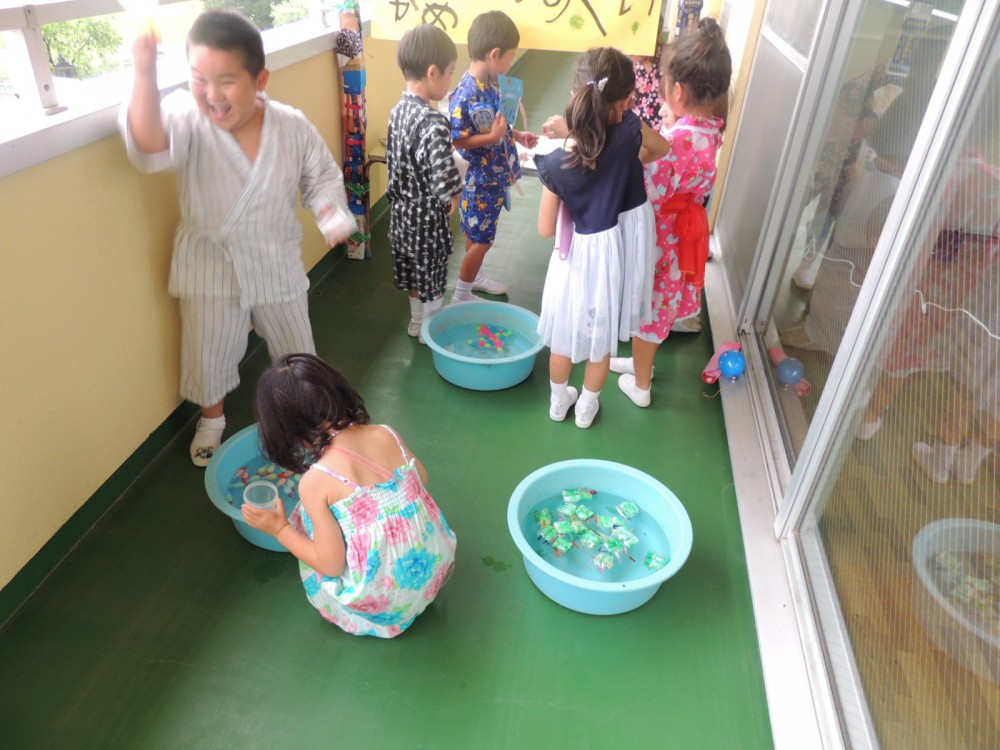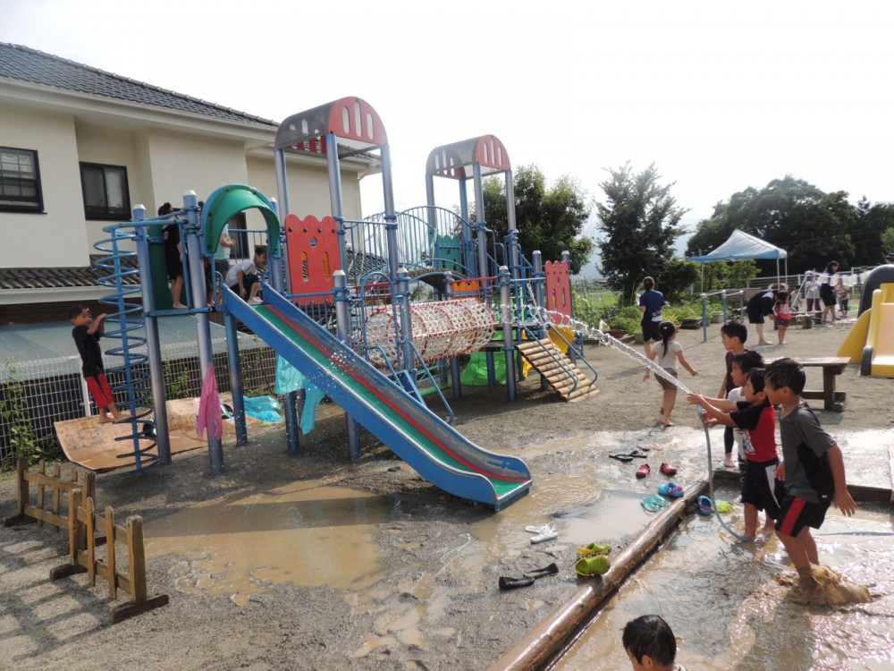 7月20日(水)~7月21日(木)にて、お泊り保育を行いました!(年長のゆき組・ほし組) 1日目のテーマは「こゆるぎサマーランド」!!泡のプール・ウォータースライダー・ブランコ・人が入れるシャボン玉プール・遊具にお絵かきコーナー・氷水プール... -