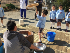 今日はこゆるぎ幼稚園のお餅つきでした♪