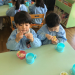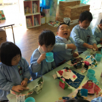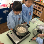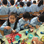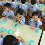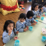 教室に戻ってからは雛あられを口にする子どもたちの姿が☺