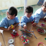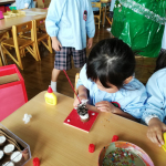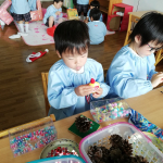 ボンドをうまく使って、思い思いのビーズやモールを飾り付けていきます😊
