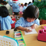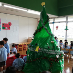 また、お部屋に現れた大きなツリーへ、折り紙などを使って飾りつけする姿もありました![]()