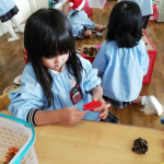 つぼみ組さんのお部屋では、まつぼっくりツリー作りを楽しんでいました✨