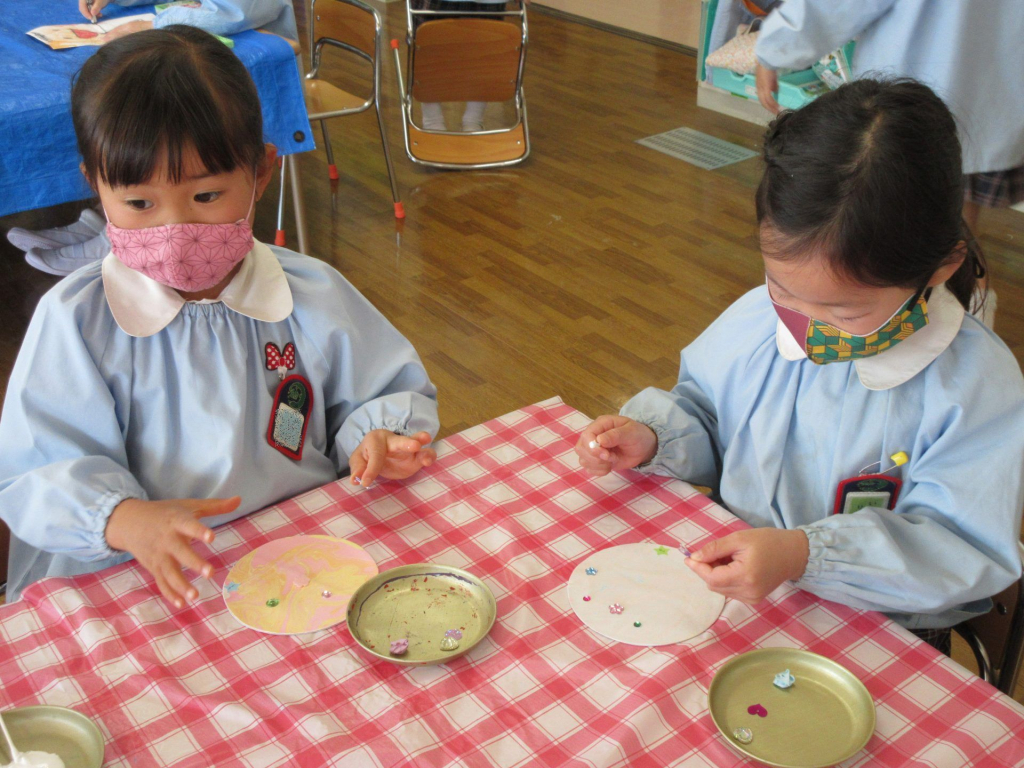 年長では、こいのぼり製作での「はじき絵」に続いて、新しい絵の具の表現方法として「マーブリング」に挑戦し、母の日製作を行いました✨今まで触れていた絵の具とは違い、水の上に浮かぶ絵の具に「なんで浮いてるんだろう…」と興味津々な子どもたち。6色の...