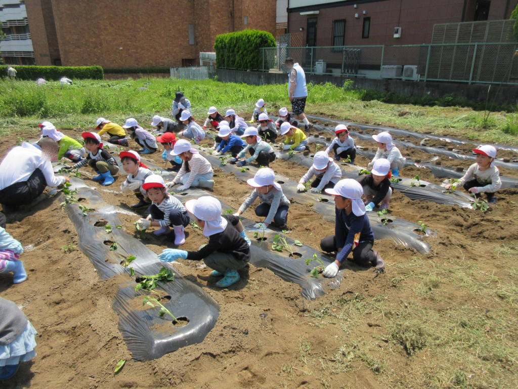 年長組では、園庭にある畑とは別に、デイセンター永耕さんの畑をお借りしてさつまいもの苗植えをしました😄長袖・長ズボンに着替え、みんなで歩いて永耕さんの畑へ!永耕さんの畑に着くと、園庭の畑より大きな畑に子どもたちもびっくり😲すぐに苗植えができ... -