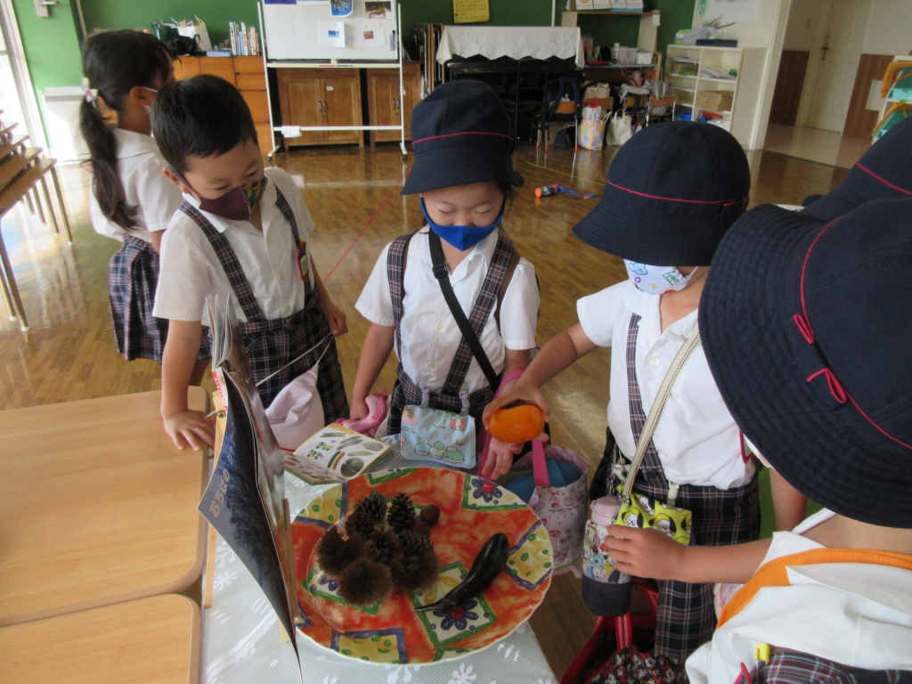 年中組では、公園で拾ってきた自然物は、子どもたちと種類ごとに分けることにしました😊「どんぐりの帽子は、どこに入れるんだっけ?」「穴の開いているどんぐりを見つけたよ!」と子どもたち同士で話しながら楽しく振り分けることができました🍂✨秋を身近に... -