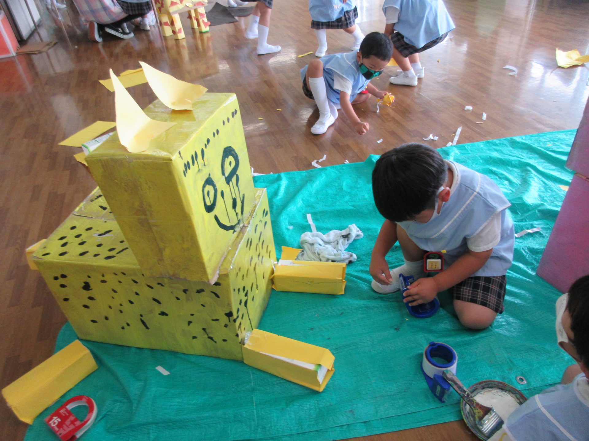 出来上がりが近づいてくるとグループの子たち同士はもちろんですが、「こんな風にしたらいいんじゃないかな?」「あれはつけないの?」と他のグループのお友だちの意見も聞き、もっと素敵にしようと作り進めていました🌟