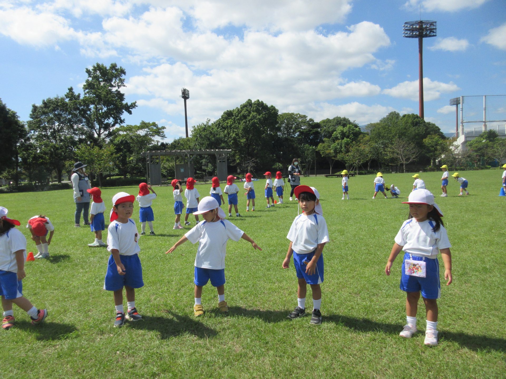 運動会は上府中公園で行うので、どんなところでやるのか見に行ってかけっこやダンスをやってみよう!と伝えると真剣に話を聞く子どもたちの姿がありました✨そして、上府中公園へ!