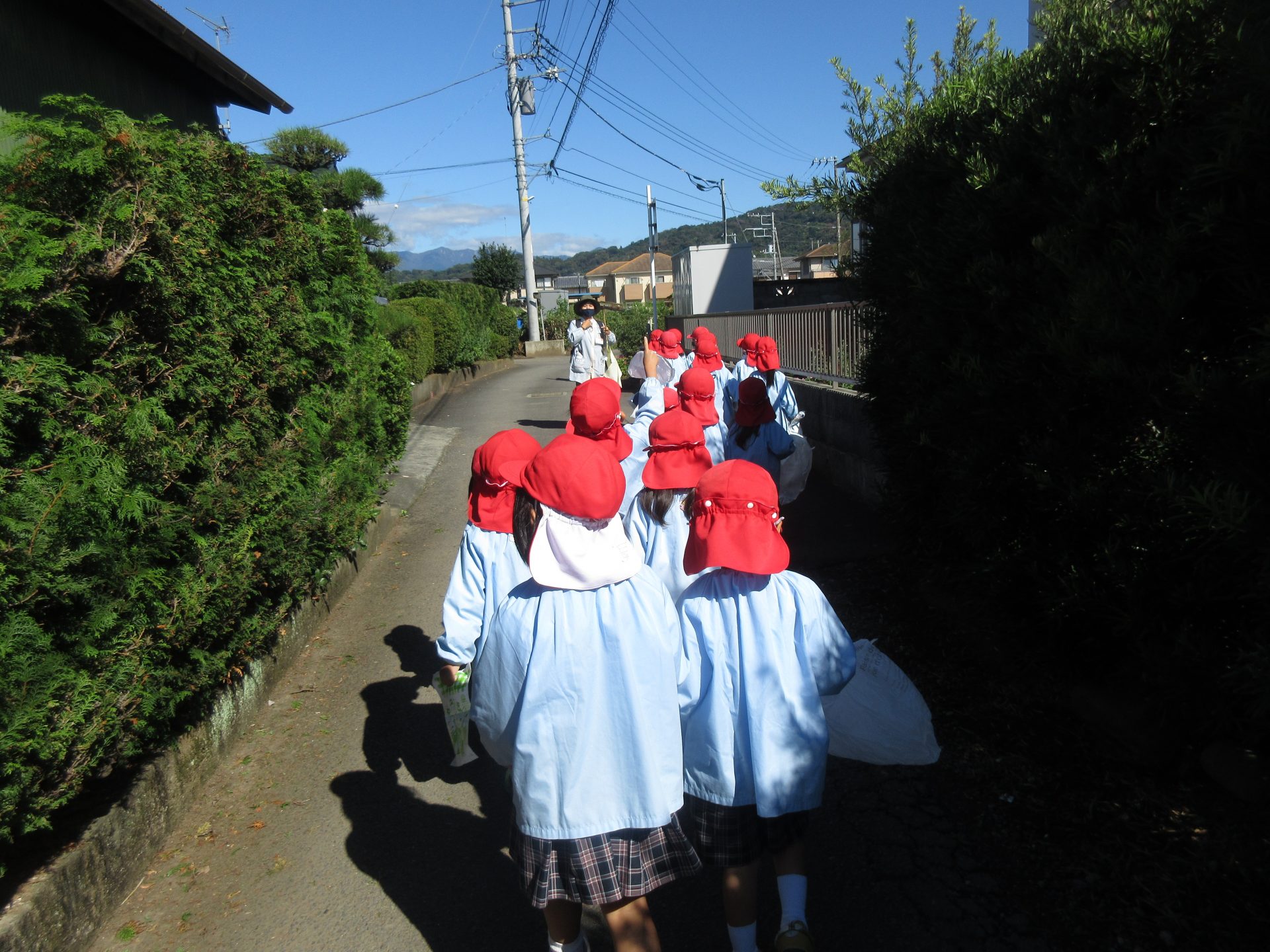 散歩の途中ですれ違う地域の方に「おはようございます!」と元気いっぱいに挨拶をする子どもたち🥰