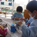 つぼみ組では、牛乳パックを使った鬼作りをしました。
