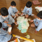まだまだ完成には時間が必要ですが、グループ・年長組みんなで創り上げる喜びを感じながら、これからも子どもたちと一緒に活動を進めていきたいと思います