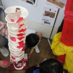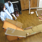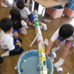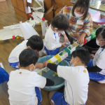 一度やってみることで、「ガムテープをもっと貼ったらいいんじゃない❓」「今度はペットボトルで作ってみる❓」と次はどうしたら良いか意見を出し合い、考えながら活動が進んでいます!