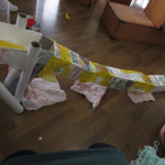先週からダンボールや牛乳パック、大型積み木や紙皿など、様々な素材を使いすべり台を作って遊んでいます❕