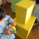 布ガムテープを切れる子は自分で切ったり、はさみでは曲線切りに挑戦するなど、活動を通して、様々な技術が向上しています✂
