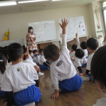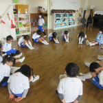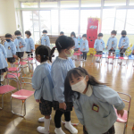 「年中の最後に何をして遊びたい❓」とみんなに聞くと、今までは発言が少なかった子も今回は積極的に発言し、「みんなといすとりゲームがしたい😆」「中当て楽しかったよね😄」と話し合いを楽しみながら進め、みんなと過ごす時間を楽しくしたい🎵という気持ちが伝わってきました😊