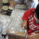 絵の具の技法として、スポンジを使ってスタンプをし、画用紙の上に雲を表現しました。