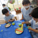 初めてのはさみの活動でしたが、はさみの使い方もとても上手で、チョキチョキ画用紙が切れる様子を楽しみながら取り組むことができました