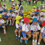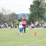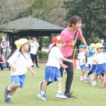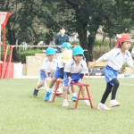 かけっこでは、隣の子に負けないように、ゴールテープ目指して全力で走り切りました🏃