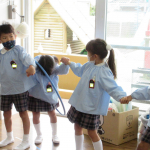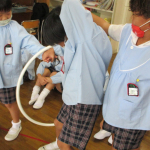 ボール運びでは、どうやったらボールを落とさずに運べるか考えたり、フラフープくぐりでも、しゃがんだりくぐりやすい場所を探したりしながら試行錯誤していました‼