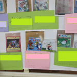 子どもたちのお気に入りの絵本を教室に掲示することで、他の子のお気に入りの絵本に興味を示し、一緒に本を見るようにもなっています。