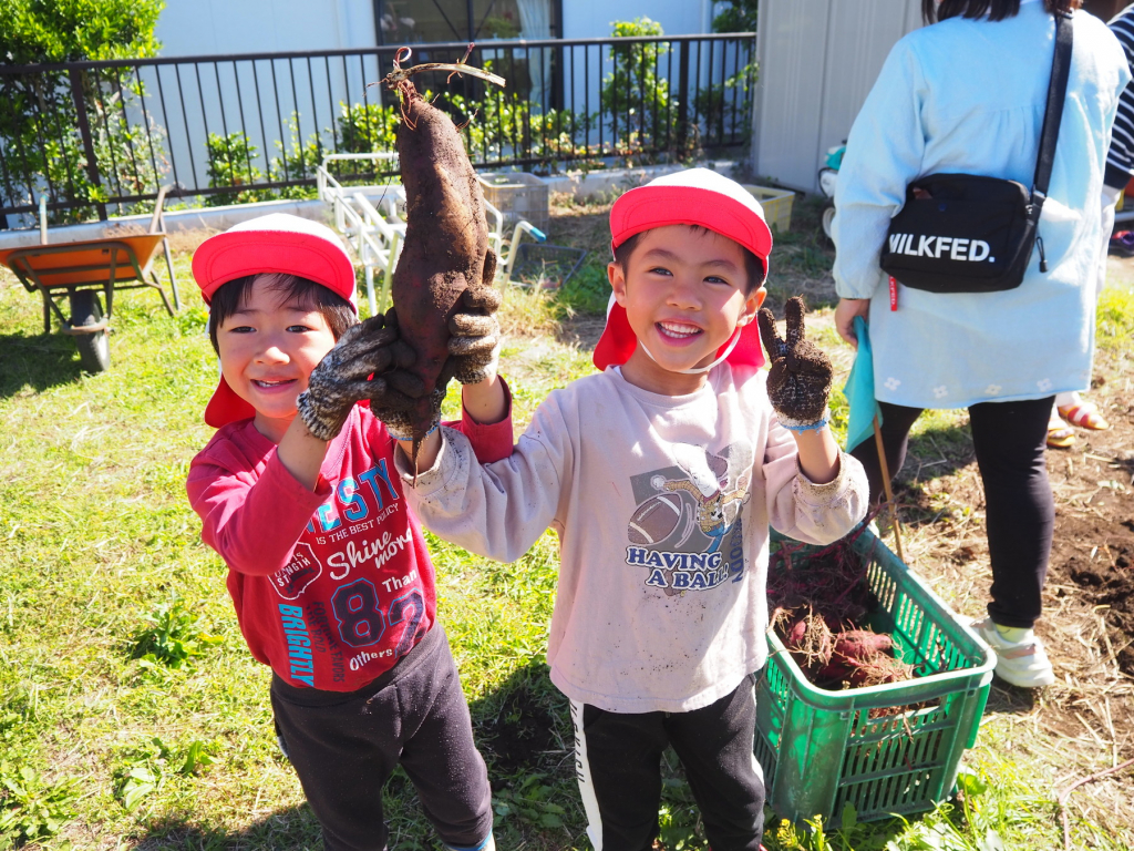 自分たちが植えたお芋の苗!子どもたちは「大きくなってるかな?」、「堀りに行くの楽しみだね!」と心待ちにしてにしていました😄畑に行き、永耕さんに掘り方を教えてもらい早速掘ってみることに!「大きくてなかなか抜けない🤣」、「ちょっと!こっち手伝... -