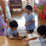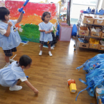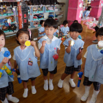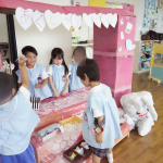 クラスごとにお店の人とお客さんを入れ替えて遊んだことで、お互いに招待し合っている気分も味わうことができ、「いらっしゃいませ~!」のかけ声もいつもより気合が入っていました😆