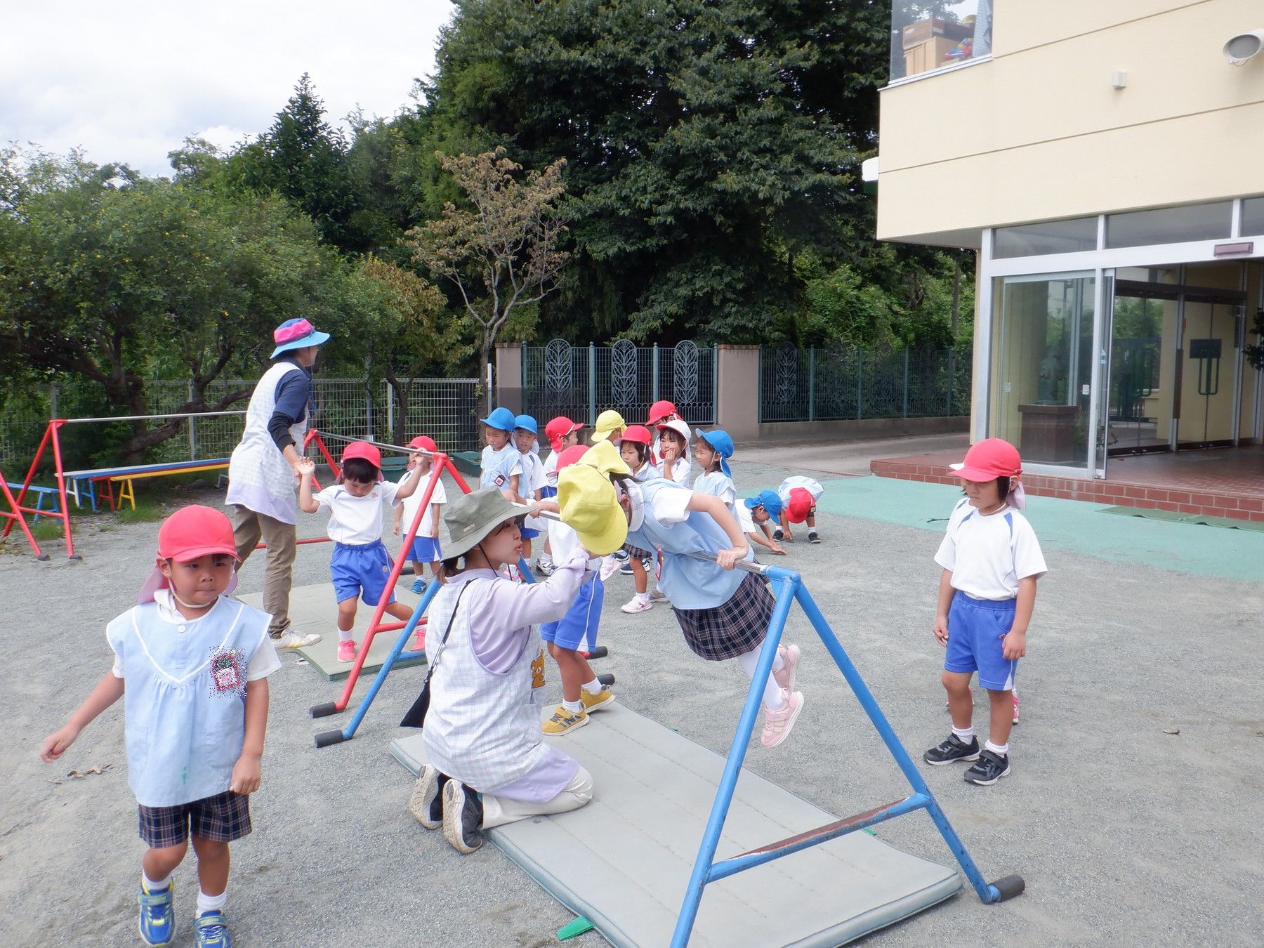 運動遊びでは、「鉄棒やりたい!」「跳び箱2段やってみる!」など、「やってみたい!」という積極的な姿や、「できるかな…。」「怖いな…。」など不安な姿など、子どもなりにいろいろな思いを持って取り組んでいるので、運動会に向けて「やってみよう。」「楽しい。」という気持ちでスタートできるよう、今後も子どもと一緒に取り組んでいきたいと思います![]()