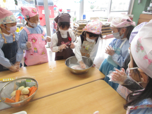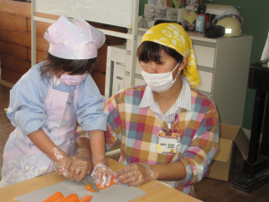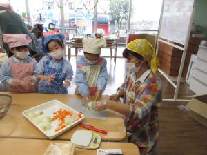 調理を始めると・・・「玉ねぎ目に沁みる~🤣」、「次にんじん🥕切りたい‼️」と夢中になっている姿がありました✨