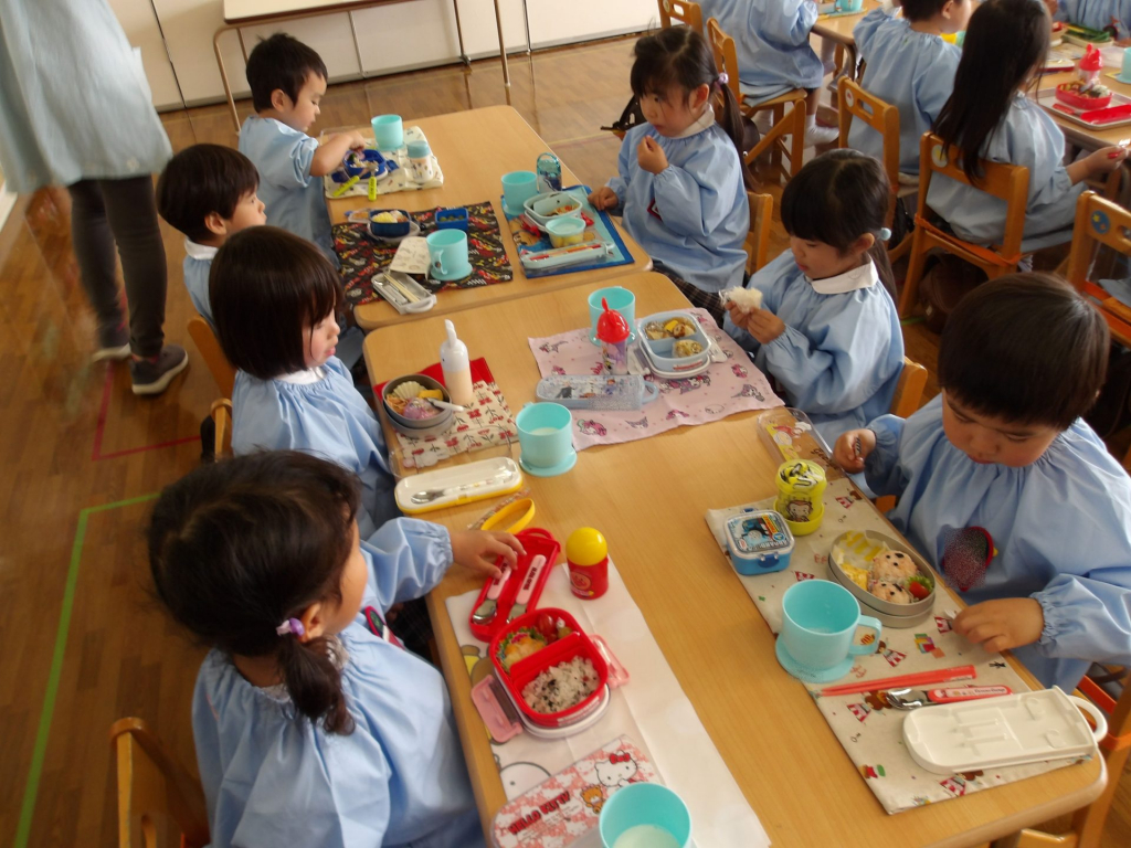 つぼみ組さんにとって、幼稚園で食べる初めてのお弁当がスタートしました😊「お弁当にタコさんウインナー入ってるんだよ!」「今日はハンバーグなの🎵」とお弁当を食べる前からワクワクしていた子どもたち。「今からお弁当食べるよ~!」と声を掛けると「や... -