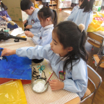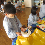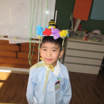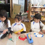 実際に作ったものを身につけて気付くこともあったようで、「頭につけたいんだけど、紐だと難しいな・・・」、「毛糸はセロハンテープだと付きにくいな~😣」と経験したからこそ感じ、その上で「ゴムで今度はやってみよう!」、「ボンドでつけてみようかな😊🎵」と自分たちで改善しようとしている姿が・・・😄
