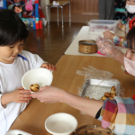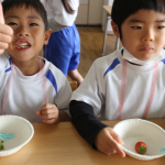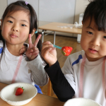 食べてみると「わ!いいにおいがする~!」「ウインナーが入ってておいしい」「いちごも甘くて最高!!」と子どもたちからも嬉しそうな表情が見られ、楽しそうに会話をしていました