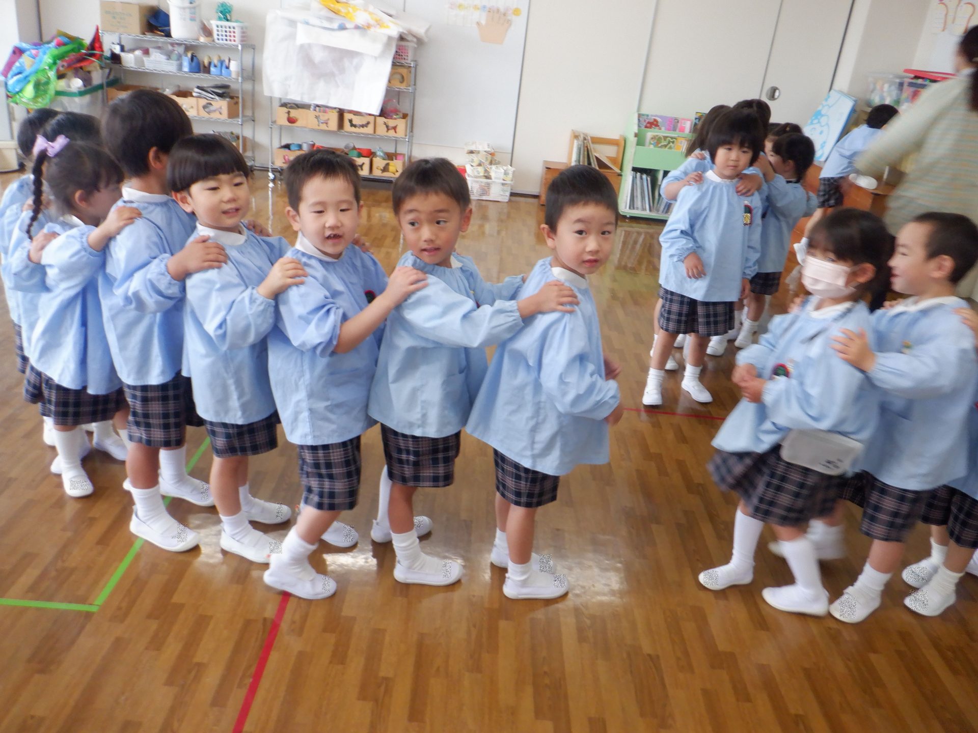 4月からじゃんけん列車や椅子とりゲーム、なんでもバスケット、お引越しゲームなど様々な集団あそびをしている年中さん😊♪