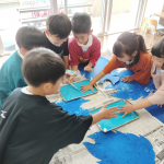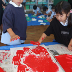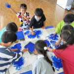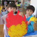 手形を押すことの楽しさや、大きな作品を作る嬉しさを味わい、運動会の活動を含め、年長組ではみんなで心を一つに頑張っています