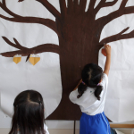 子どもたちが折った折り紙は、部屋にある大きな木に飾り、少しずつどんぐりの木ができてきています💓