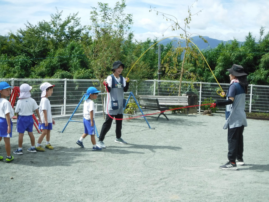 年長組の子どもたちはダブルダッチに挑戦しています💪✨去年・昨年の運動会での年長組の姿を見て「すご~い!かっこいい!」「僕も年長さんになったらできるようになるかなぁ」と憧れや期待の気持ちをもっていた子どもたちはじめは、2本の縄が回っている中に... -