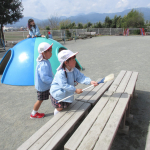 年長組の子どもたちは、こゆるぎ幼稚園の一番お兄さん・お姉さんになったことが嬉しいようで早速「今日のお当番は誰がやるの?」「年長さんがやってたお掃除やってもいい?」とやる気満々