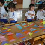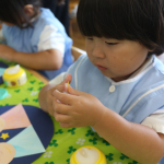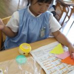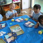 つぼみ組の子どもたちは、絵本や教師の話を通して”七夕”の行事を知ることができ、製作も楽しんでいました