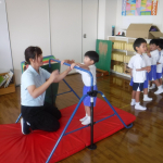 鉄棒が得意な子もいれば、跳び箱が得意な子がいたり…と人それぞれですが、得意なものも苦手なものも楽しみながら取り組んでほしいと思っています😄