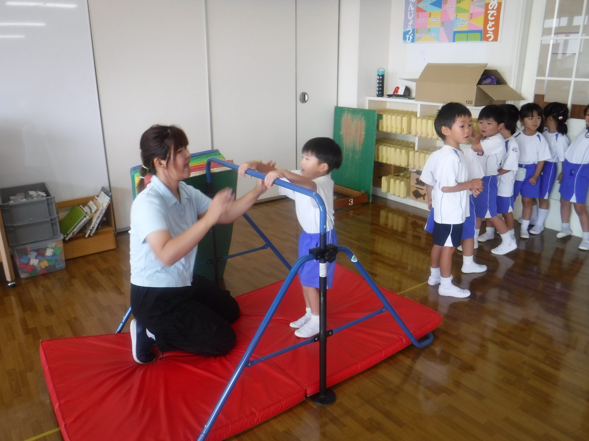 鉄棒が得意な子もいれば、跳び箱が得意な子がいたり…と人それぞれですが、得意なものも苦手なものも楽しみながら取り組んでほしいと思っています😄