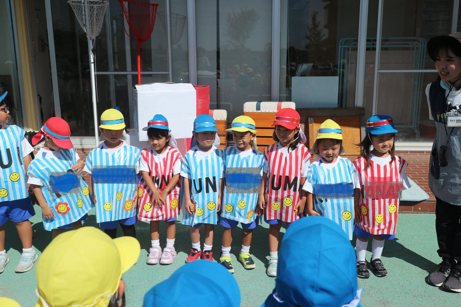 つぼみ組で玉入れは2回やっていましたがなかなか入らず、最高5球のみでしたが、お兄さん・お姉さんのパワーが入ると最高で40球入ることに驚き、それぞれ勝てたときは嬉しそうな表情を浮かべていました