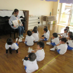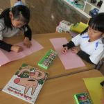 役が決まってからも、「キャンディーやさんになったんだよ!」、「わたし、子ヤギ役なんだよ♪」とクラスが違っても話をして盛り上がる子どもたちです🐺💗