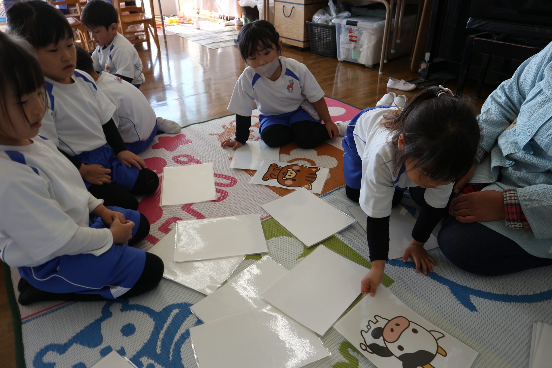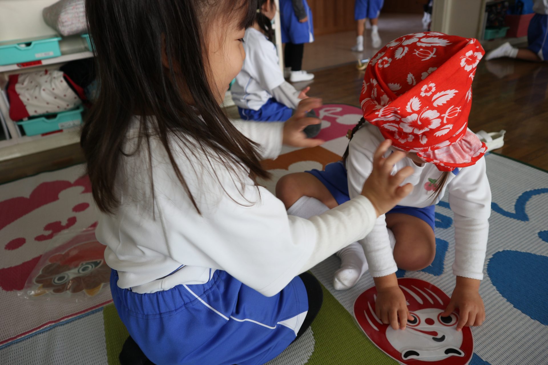 つぼみ組では、絵合わせカード・福笑い・コマ回し・けん玉などの伝承あそびを友だちと一緒に楽しんでいます😊