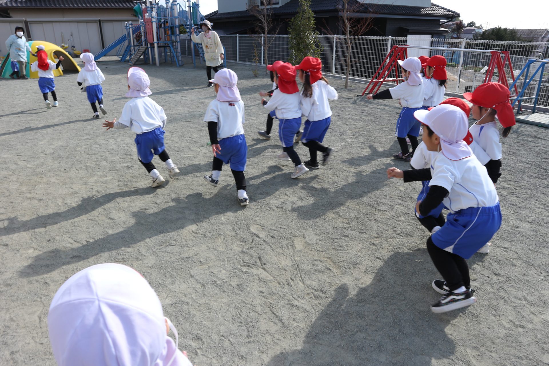 今後も戸外では、はないちもんめ・だるまさんが転んだ・かごめかごめなどのあそびを通して仲間意識を高めることや集団遊びでの楽しさ味わい、日本の昔からあるあそびを大切にしていきたいと思います💕