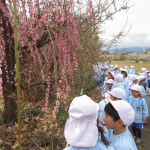 園に戻ってからの振り返りでは、「しだれ梅よりも花びらが多い梅があったの!桃の花かな?」と細かい所まで気付く年長らしい姿も🌸「どんな匂いがしたか・何色の梅があったか・気付いたこと」など年長みんなで伝え合うことができました!