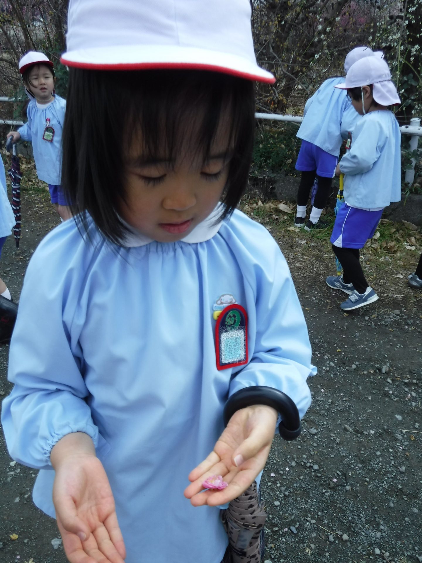 園に戻ってからの振り返りでは、「しだれ梅よりも花びらが多い梅があったの!桃の花かな?」と細かい所まで気付く年長らしい姿も🌸「どんな匂いがしたか・何色の梅があったか・気付いたこと」など年長みんなで伝え合うことができました!