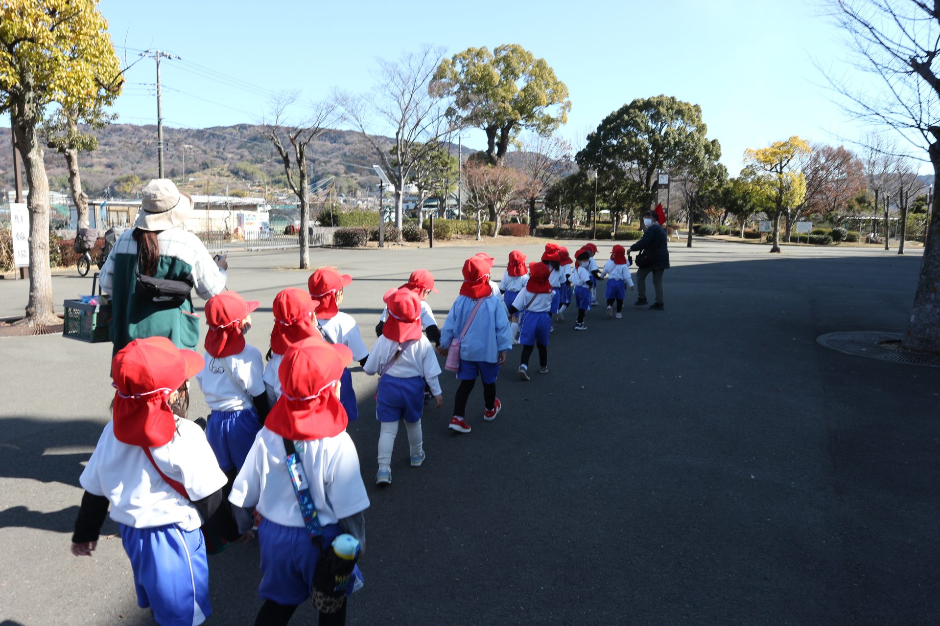 帰りは上府中公園から幼稚園まで、お友だちと2人組になり並んで歩いて帰りました。並んで歩くこともとても上手になり、成長を感じられるつぼみ組の子どもたちです![]()