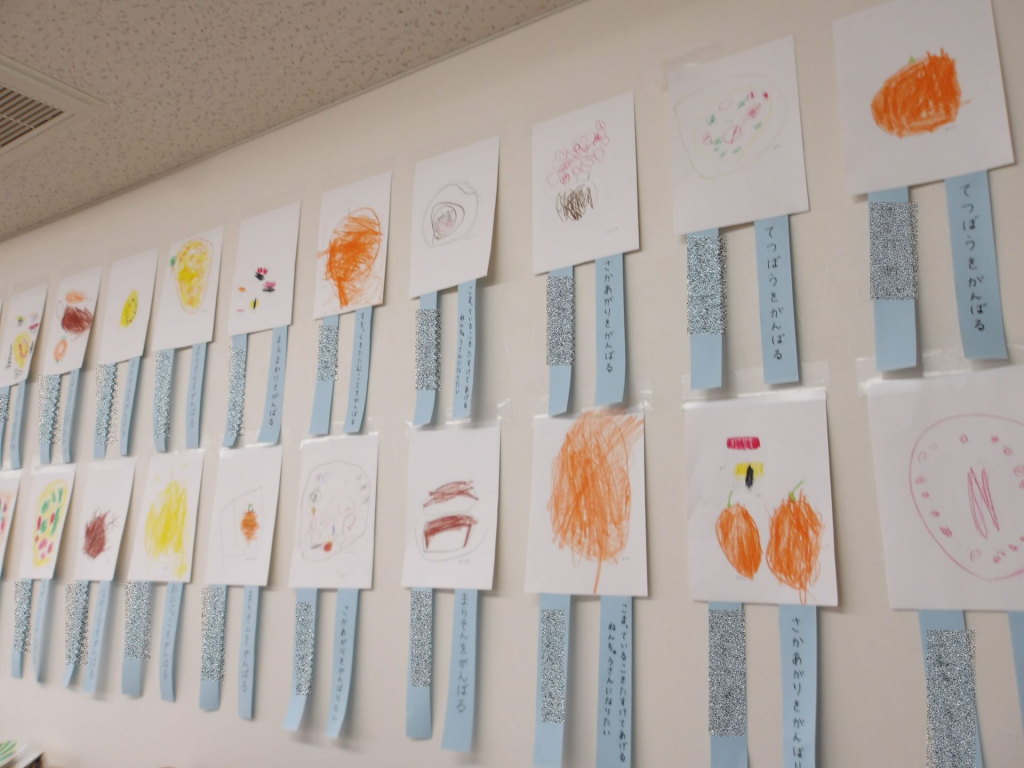つぼみ組では、凧を作りました!冬休みに食べたものをイラストを見ながら、クレヨンで描くという活動をしました🖍大好きな食べ物を描くことで簡単に描くことができ、楽しそうに描く姿がありました♪また、一人ひとりに3学期に頑張りたいことやどんな年中さん... -